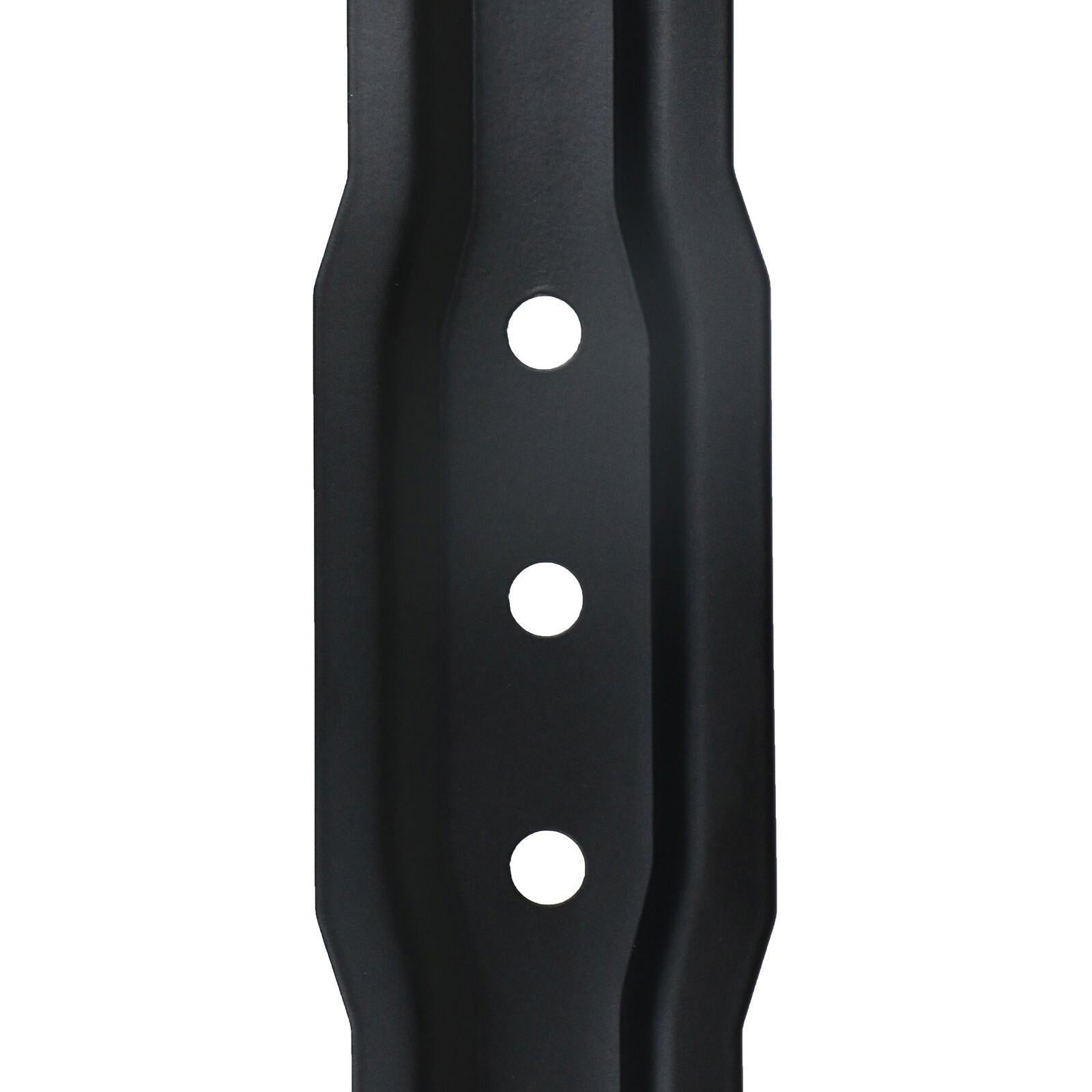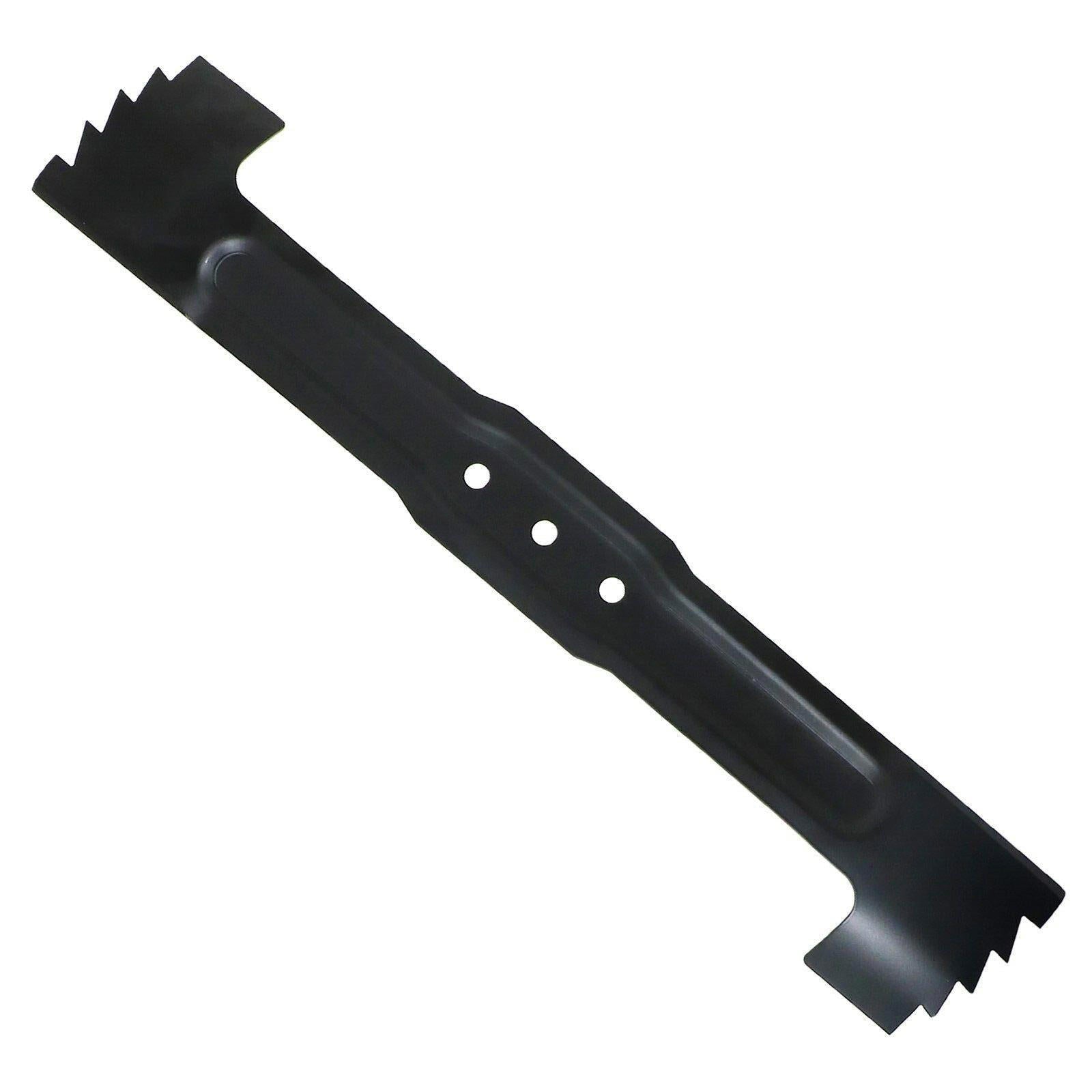 Blade is factory sharpened balanced and ready to fit. Brand new, premium quality replacement blade. Expertly crafted with rust and weather resistant steel, this replacement features dual curved and sharp jagged blade ends for highly effective grass cutting in gardens of all sizes and maximum grass / debris collection into the collection compartment whilst mowing.