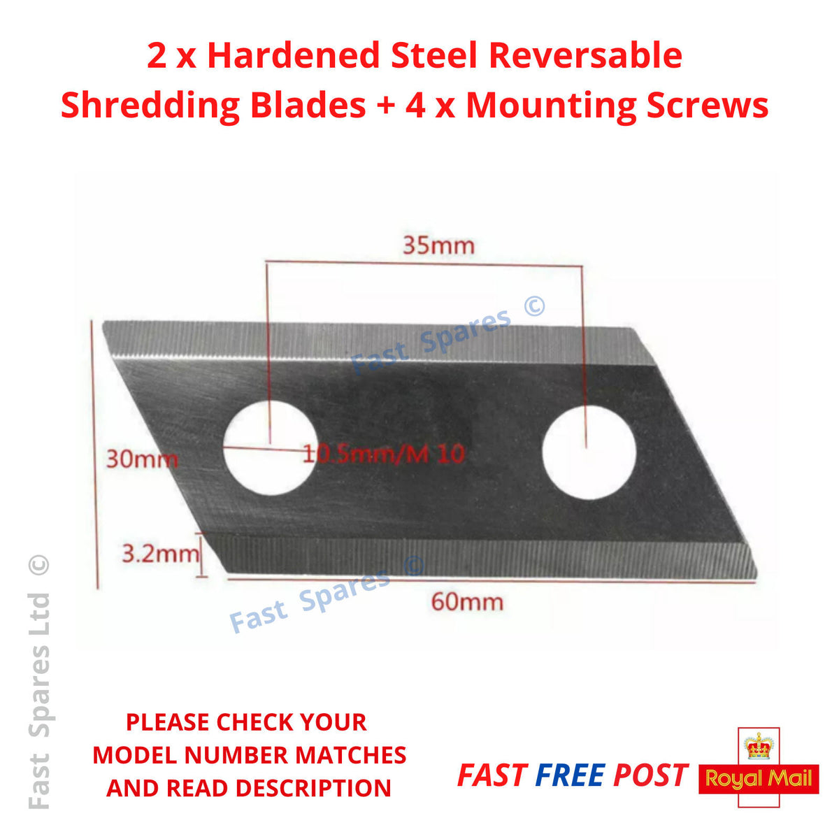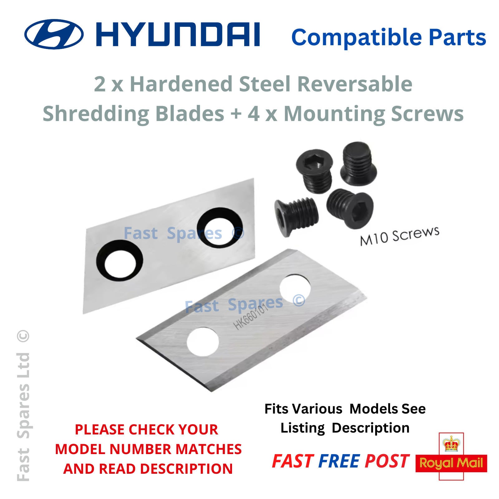 Hyundai HYSH3000E Garden Shredder Blades + 4 Screws FAST POST
