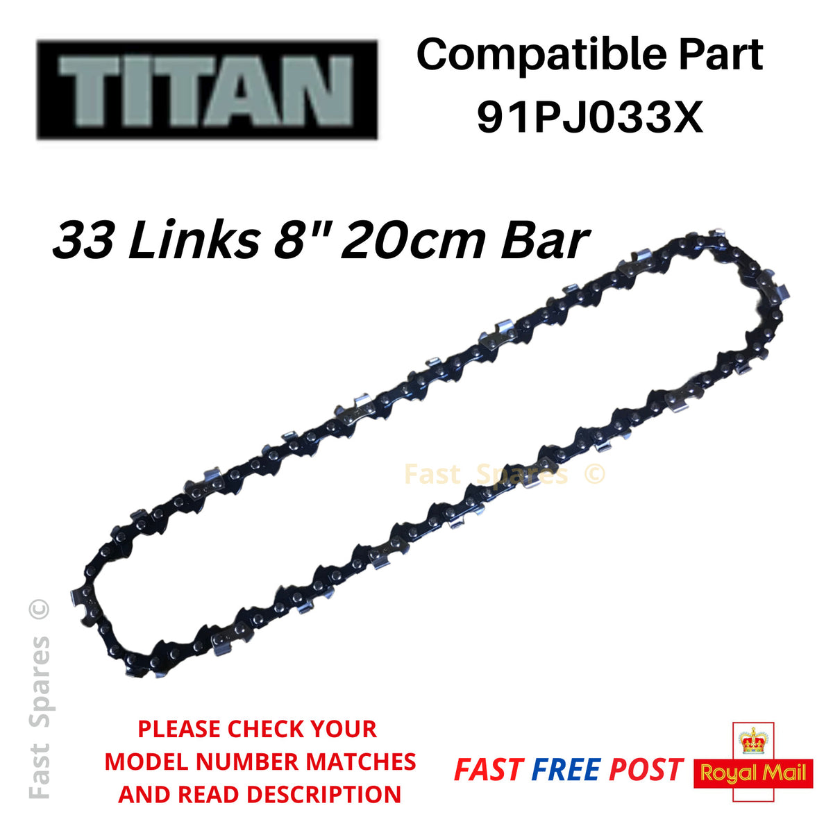 TITAN DPL432GDO Pole Saw Chainsaw Chain 20cm 8" Bar 33 Links FAST POST