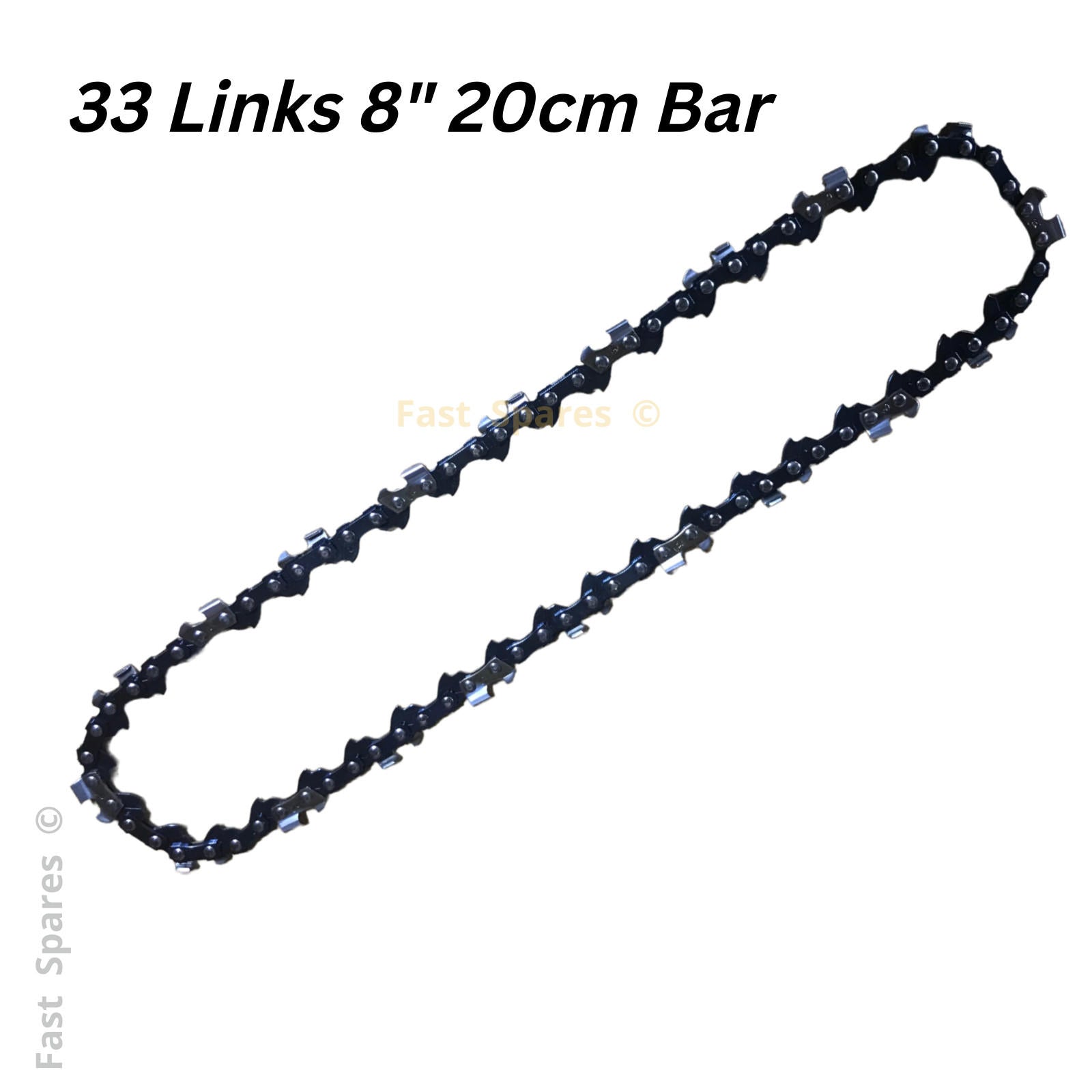 Fits ALL 20cm (8") Electric & Petrol chainsaws / Pole Saws using 3/8" (9.5mm) guide bar & chain with 33 drive links 1.1mm guide bar slot.
